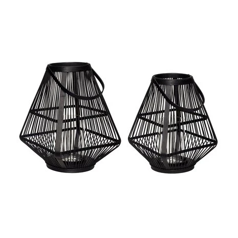 Hubsch Lantaarns Bamboe Zwart- Set Van 2 Stuks